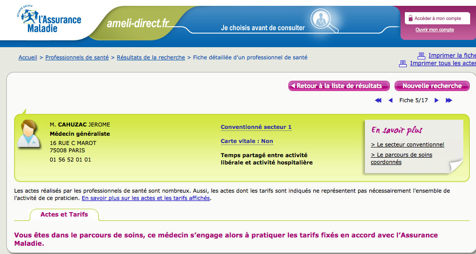 Une petite dernière pour finir, et avant que vous alliez vomir, voici comment est mentionné Cahuzac sur le site de l’ assurance maladie, ameli.fr, et que vous pouvez consulter ici. Si vous avez la flemme, voici la capture d’ écran: