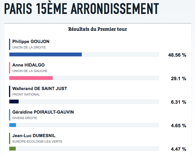 Alors que les journaputes prédisaient une élection pour l’ horripilante au phrasé insupportable (avez-vous déjà essayé de l’ écouter?), NKM arrive en tête. Les commentateurs avisés ont immédiatement enfourché un nouveau bidet sur le thème: NKM n’ a pas de réserve de voix, les arrondissements clés sont acquis à la gauche, et putati, et enfilemoua. Je n’ en ai pas entendu un seul remarquer que Hidalgo s’ était faite électoralement démontée dans le 15ème où elle se présentait elle-même. Pour tous ces oublieux, je rappelle le score: