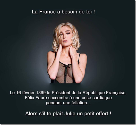 Décidément, ce quinquennat n’en finit plus de nous éblouir, et nous aurions tort de nous priver d’une resucée. A moins que Julie nous vienne en aide ….